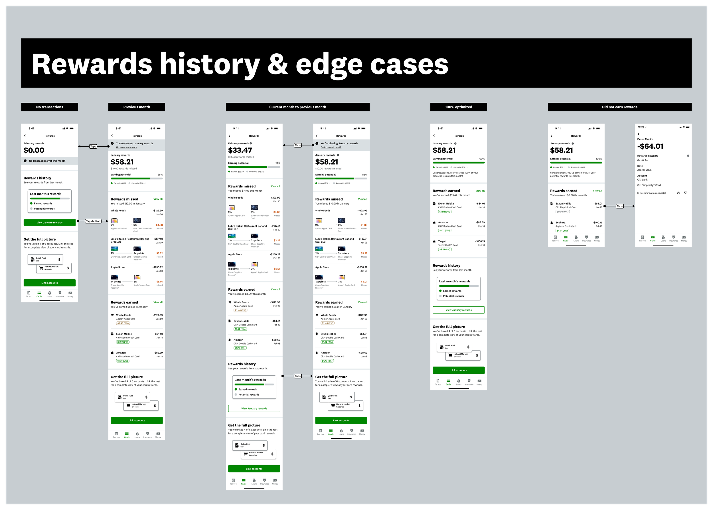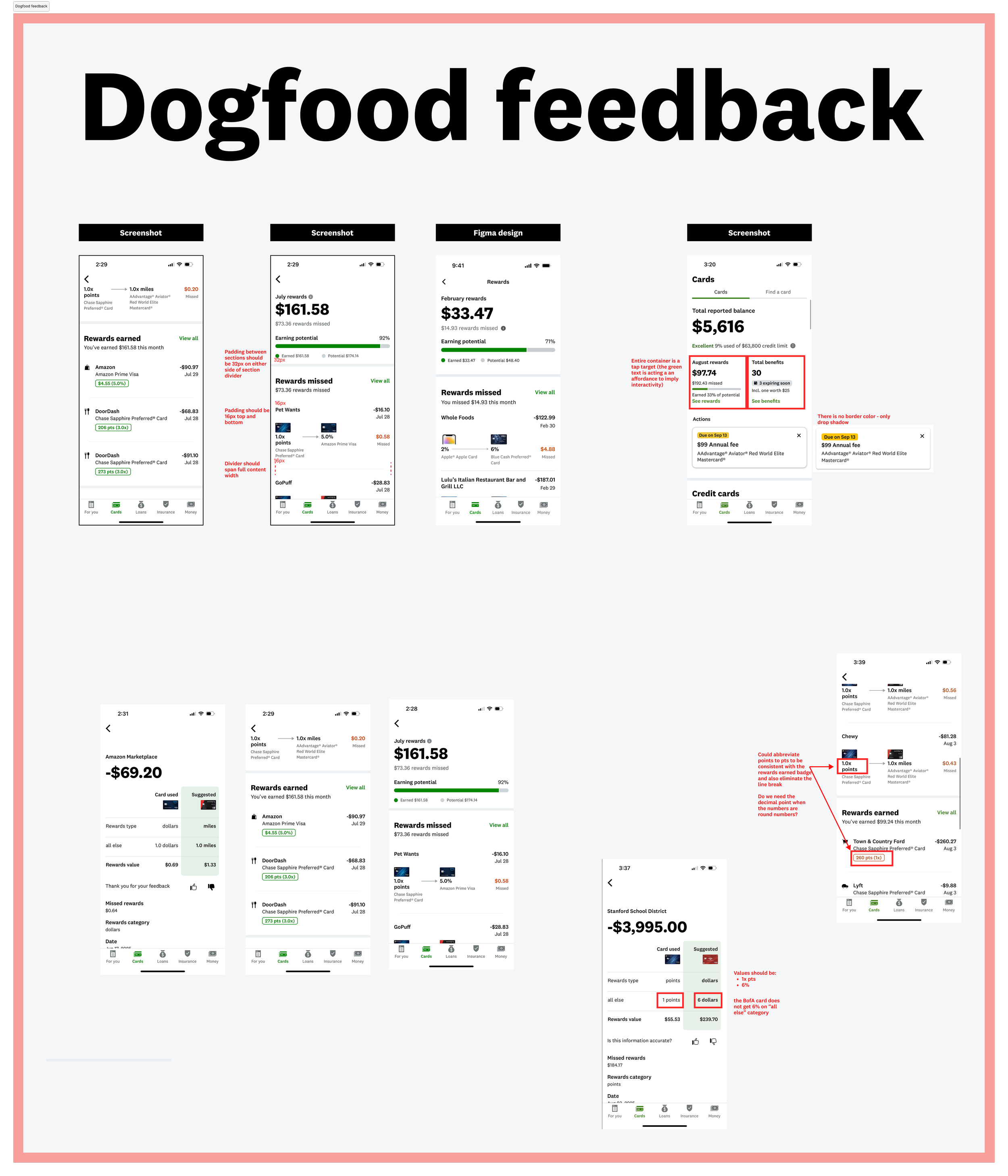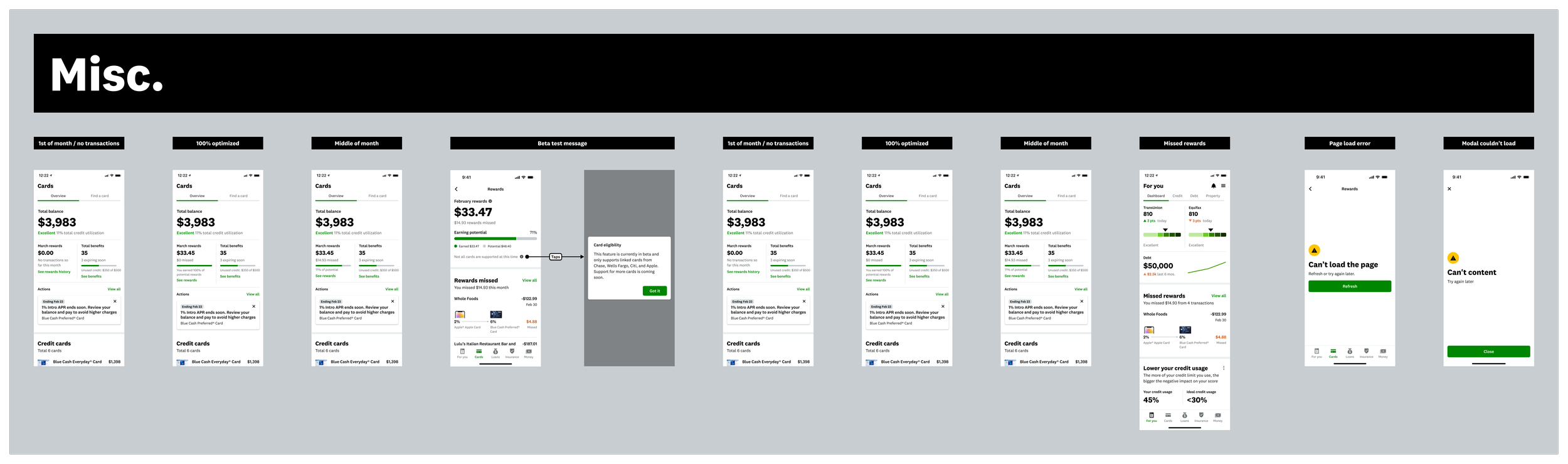 This project reinforced the value of balancing speed with intentional discovery—especially during periods of organizational change. The Credit Cards team had strong instincts and deep domain expertise, and my role was often less about generating ideas and more about creating shared understanding, narrowing focus, and helping the team make confident decisions under uncertainty.